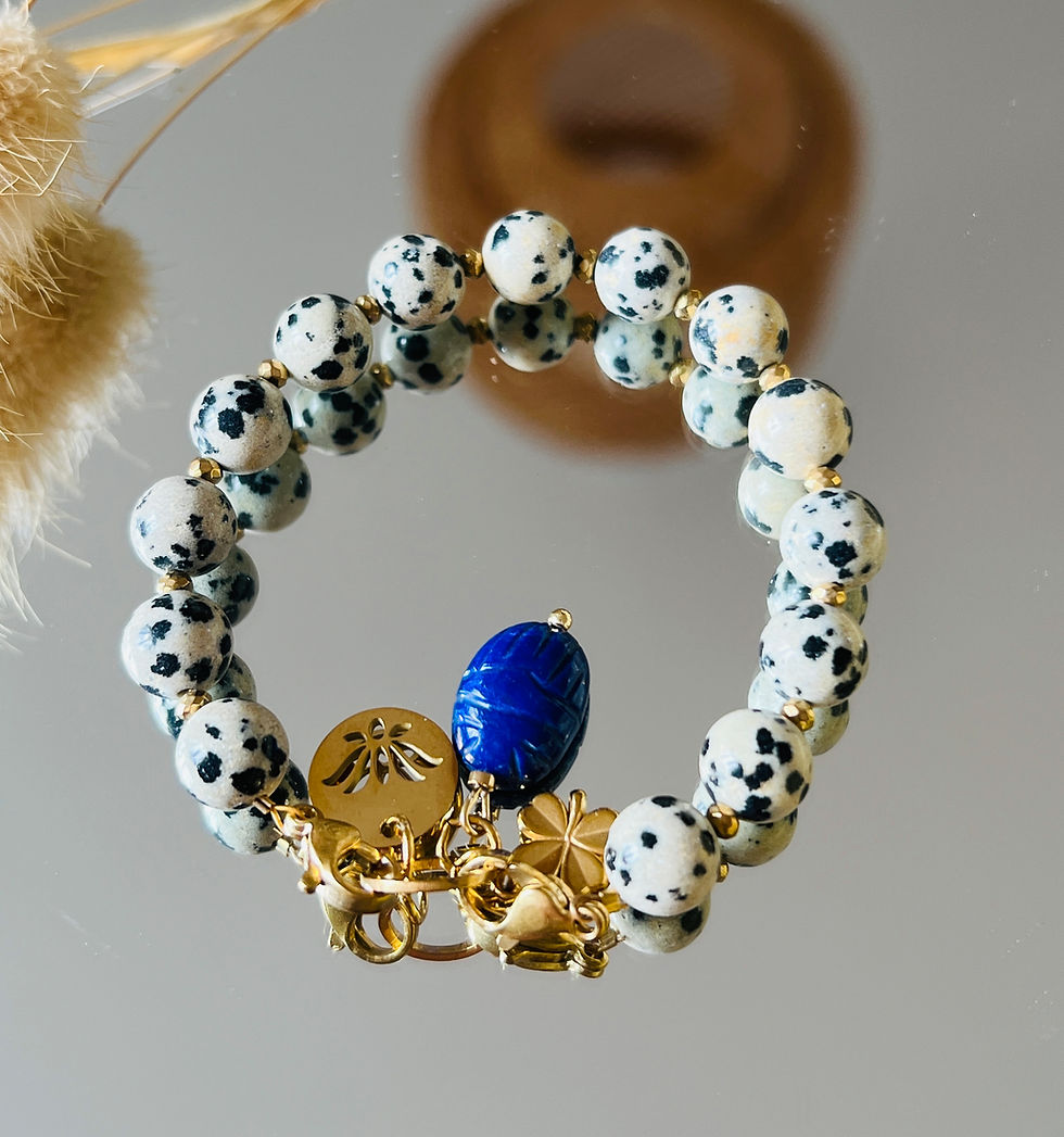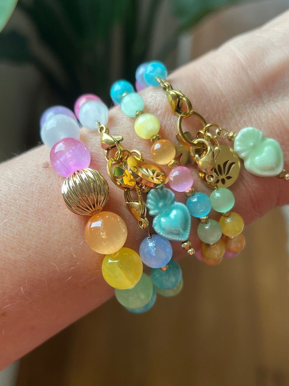 Les bracelets de la gamme CLYDE, ce sont des bracelets aux pierres généreuses en 8 mm sur lesquels vous venez clipser des grigris.